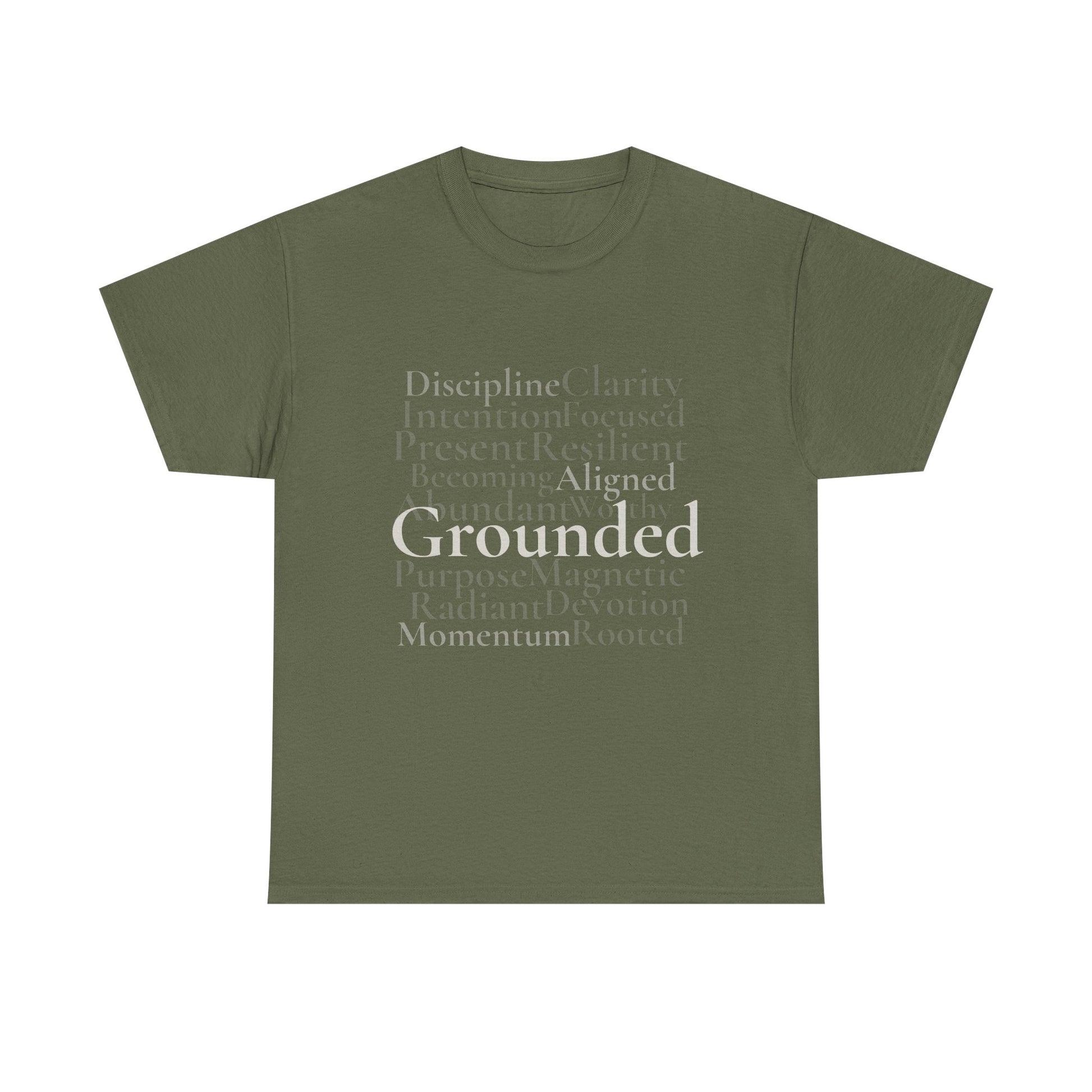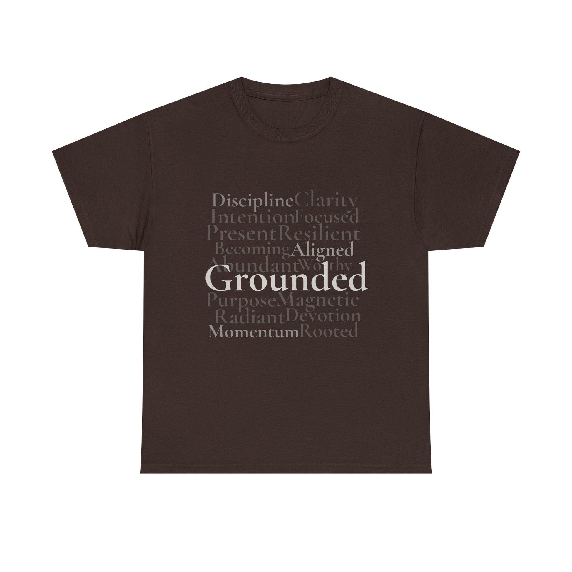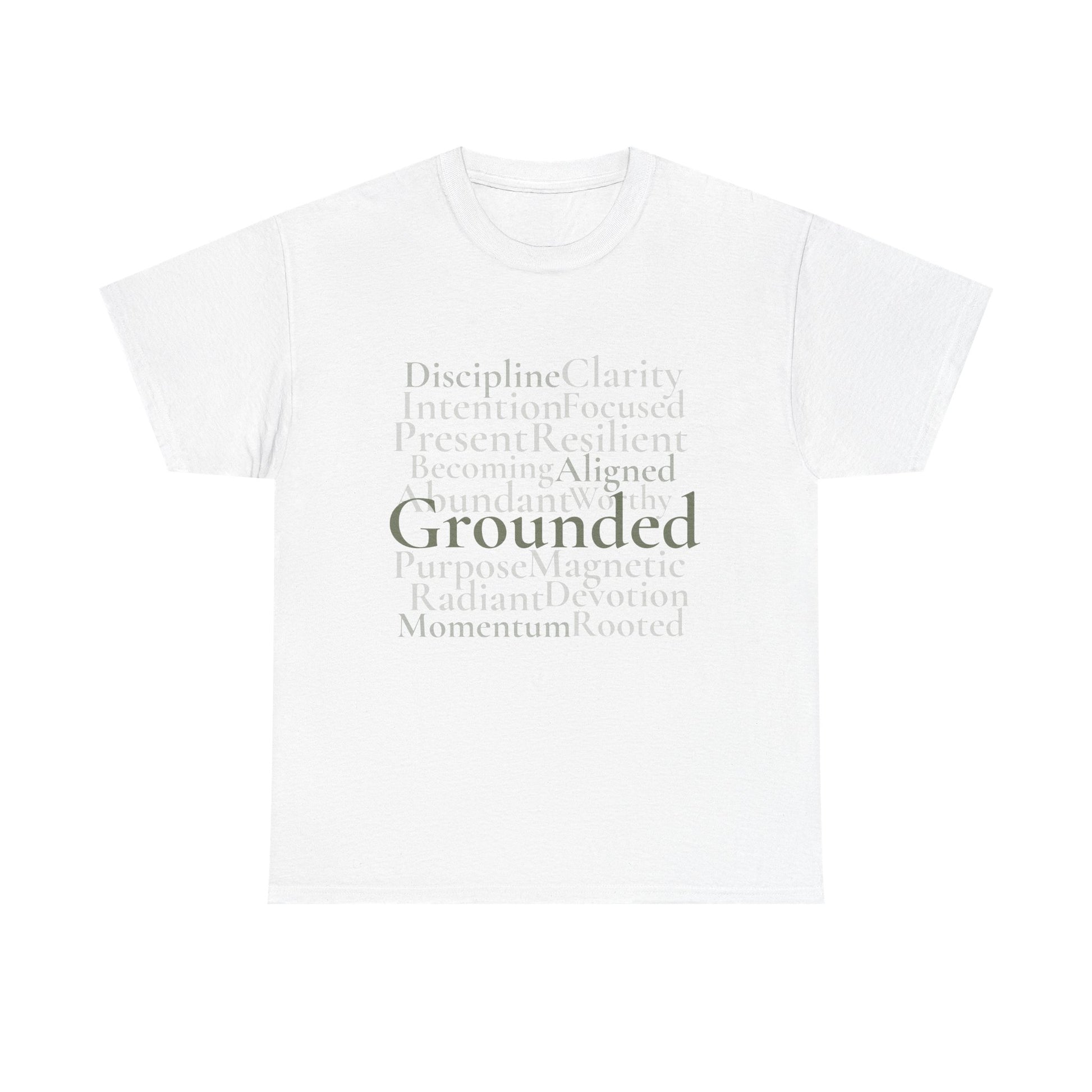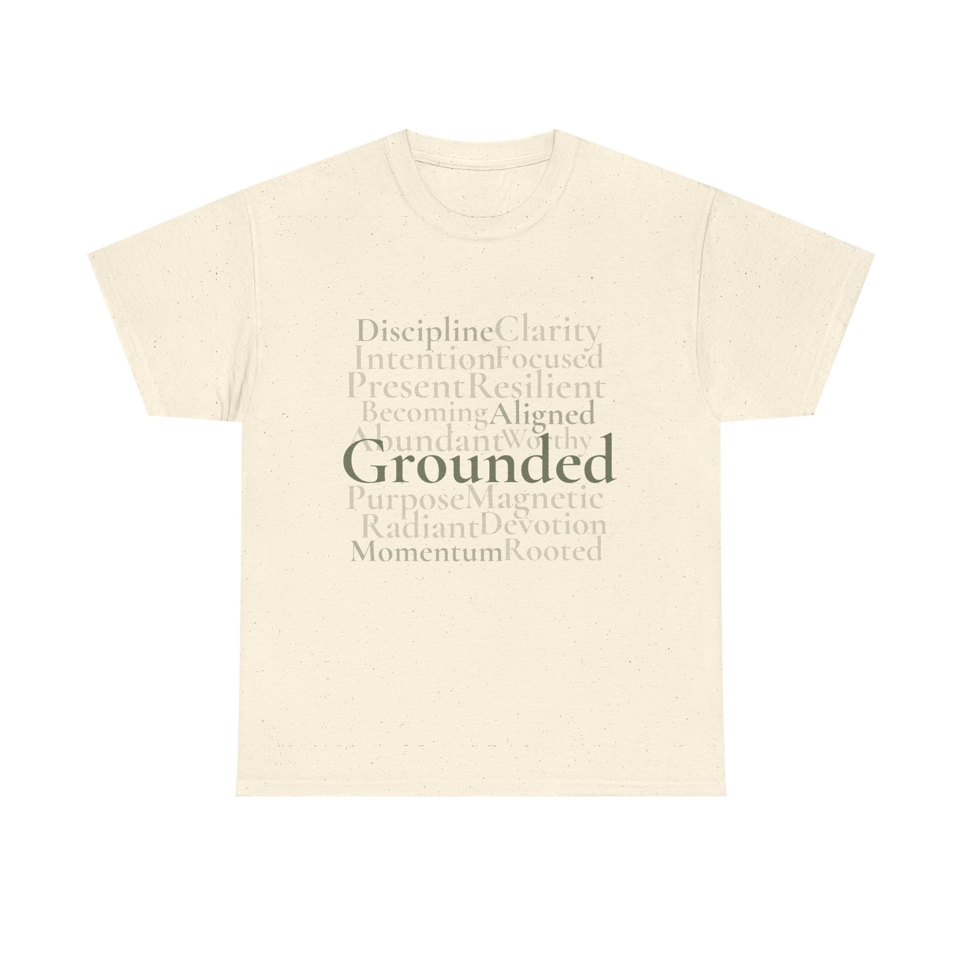 Part of the Grounded Collection, this tee features layered typography built around the values behind the work. Designed to be worn without explanation.